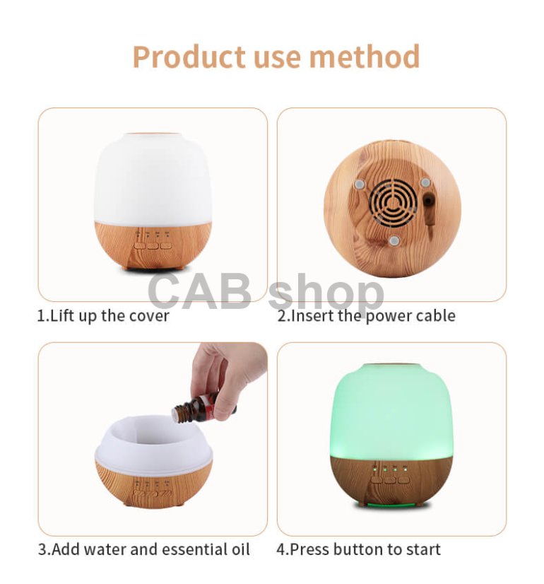 1. Klasická kresba dřeva: Tento aromaterapeutický difuzér má klasický dřevěný povrch, jednoduchý a elegantní, vhodný zejména k dekoraci obývacího pokoje, ložnice, kanceláře, hotelu atp.
