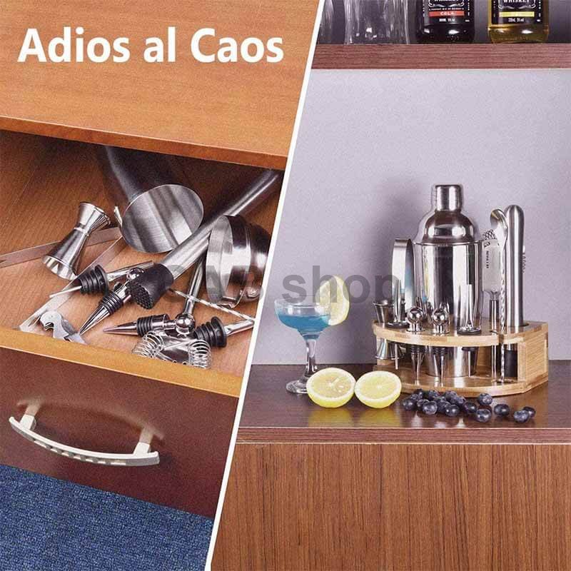 Elegantní design a praktický stojan: Barmanská sada pro míchání koktejlů je navržena tak, aby ladila s jakýmkoli interiérem, ať už máte moderní kuchyni nebo klasický bar. Nerezový stojan umožňuje snadné uskladnění a přístup ke všem nástrojům, přičemž zajišťuje jejich bezpečné uložení.