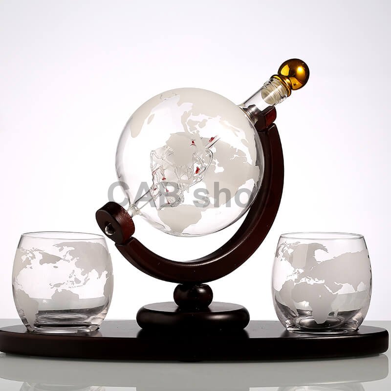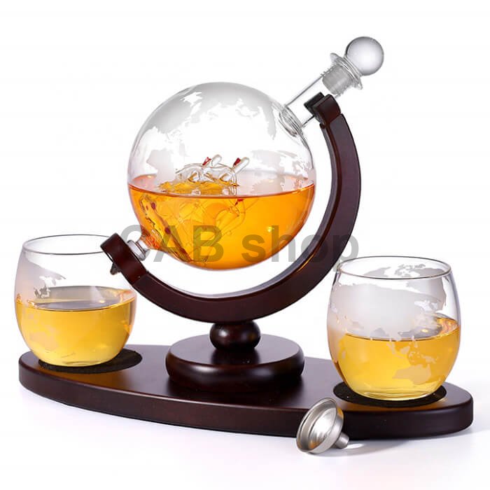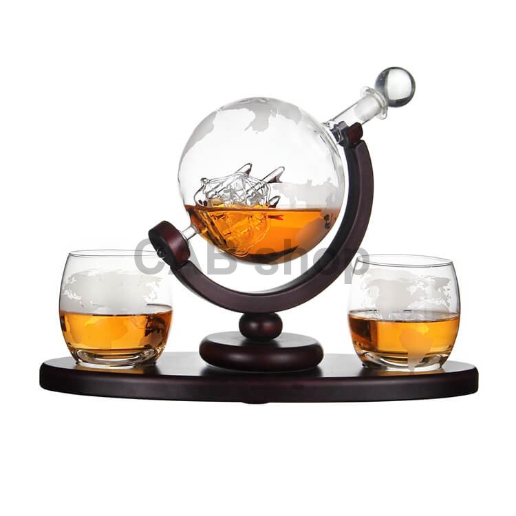1. Karafa ve tvaru glóbu: Umělecké dílo, které upoutá pozornost. Karafa ve formě globu s trojrozměrnou plachetnicí uvnitř přidává eleganci a styl do vašeho obývacího pokoje nebo sklepa.