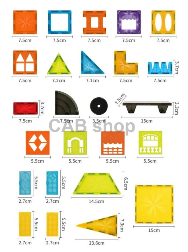 | Kombinovatelnost | Magnetic Tiles, Magnetic Tiles XINBIDA, Magnetic Building Tiles, a jiná většina magnetických stavebnic, Snadno kombinovatelné |