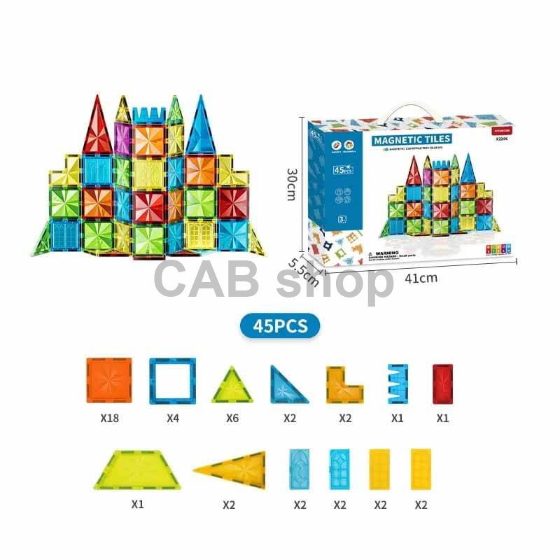 Vítejte ve světě nekonečné kreativity a zábavy s naší Magnetickou stavebnicí 45ks sada – Magnetic Tiles, která je navržena tak, aby podněcovala představivost a podporovala rozvoj jemných motorických dovedností u dětí od 3 let. Tento skvost mezi hračkami není jen obyčejnou stavebnicí, ale bránou do světa fantazie, kde se každé dítě může stát architektem svých snů.