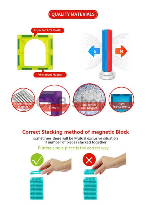 | Kombinovatelnost | Magnetic Tiles, Magnetic Tiles XINBIDA, Magnetic Building Tiles, a jiná většina magnetických stavebnic, Snadno kombinovatelné |