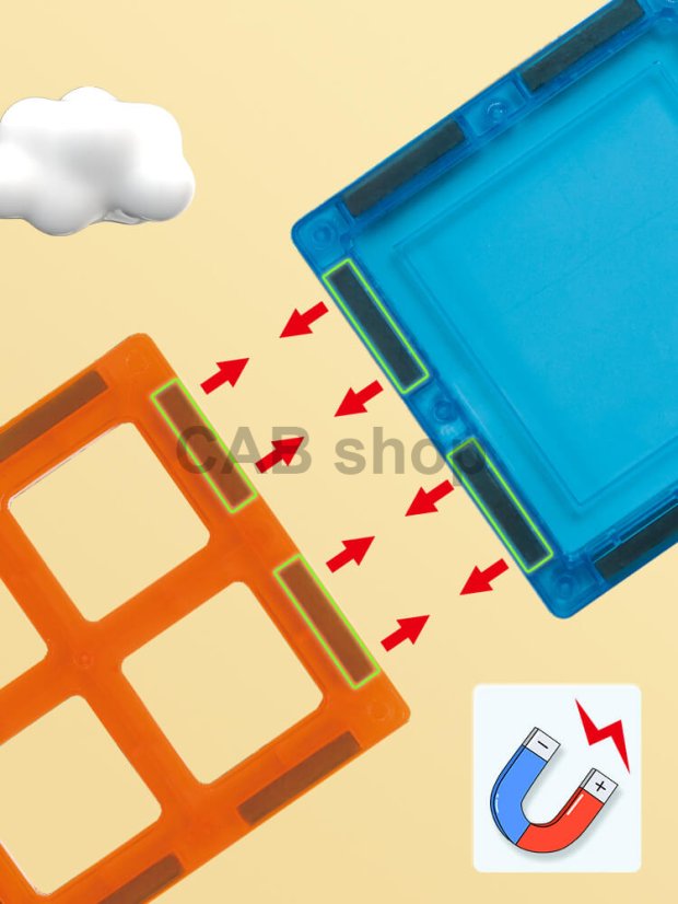 4. Jednoduché a intuitivní použití: Magnety uvnitř dlaždic jsou dostatečně silné, aby udržely různé konstrukce pohromadě, ale zároveň jsou dostatečně lehké na to, aby je děti mohly snadno manipulovat. Stačí jen přiložit k sobě a dlaždice se automaticky spojí.
