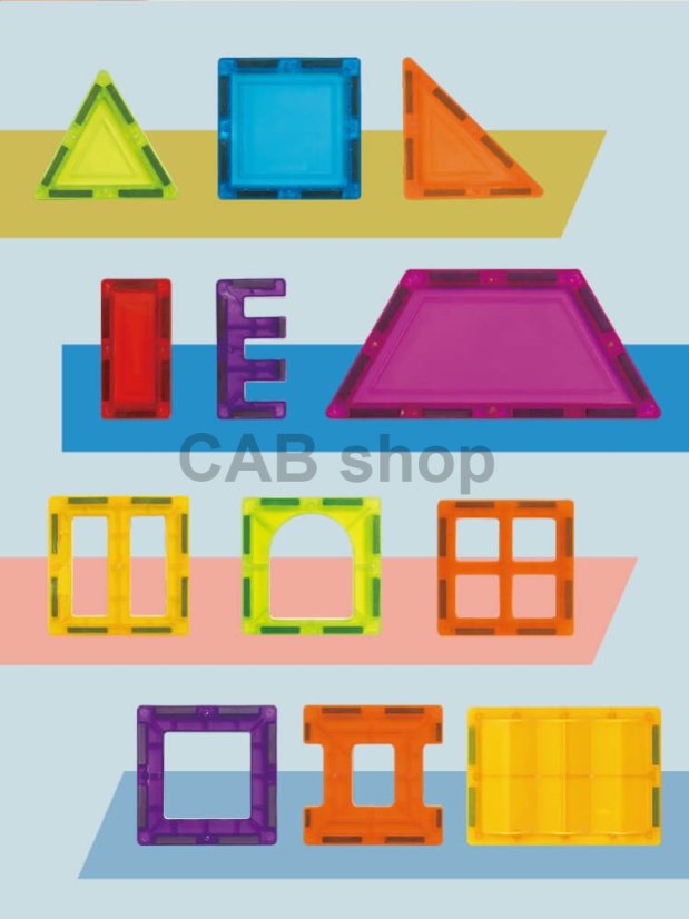 - 85 magnetických dlaždic různých tvarů a barev (v základní sadě)