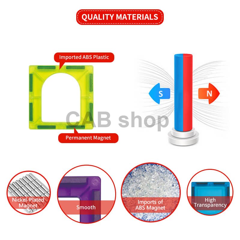 3. Kvalitní a bezpečné materiály: Bezpečnost vašich dětí je pro nás prioritou. Naše magnetické dlaždice jsou vyrobeny z vysoce kvalitního, netoxického plastu, který je odolný a bezpečný pro děti od 3 let. Všechny hrany jsou hladké a zaoblené, aby se předešlo zraněním.