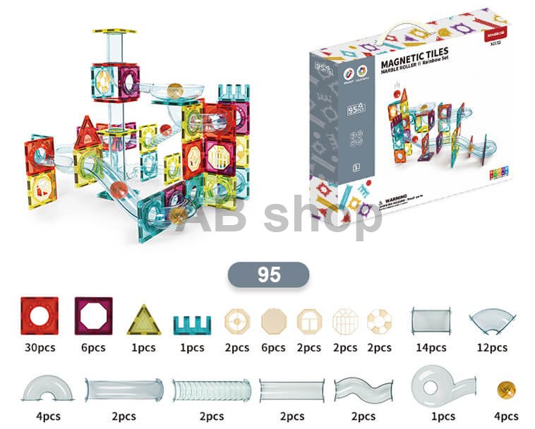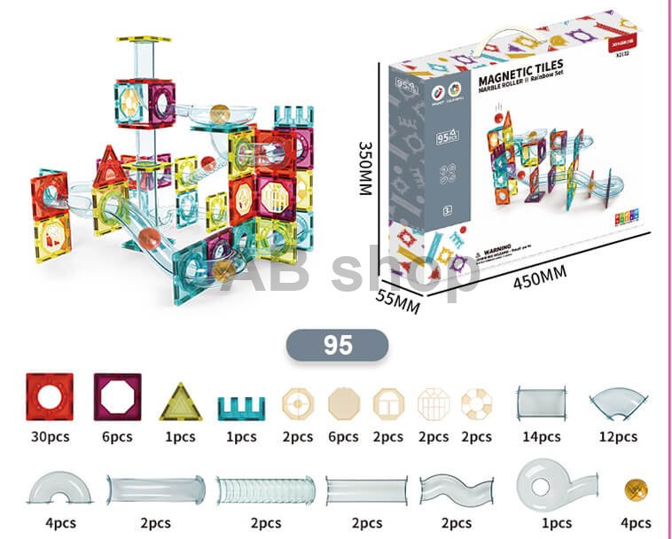 | Kombinovatelnost | Magnetic Tiles, Magnetic Tiles XINBIDA, Magnetic Building Tiles, a jiná většina magnetických stavebnic, Snadno kombinovatelné |