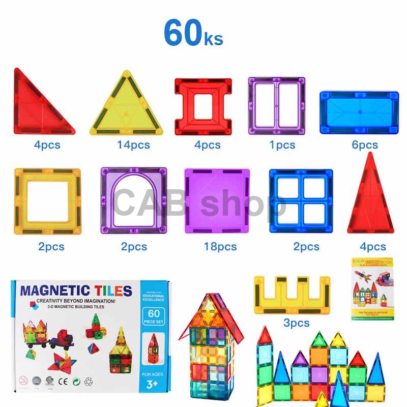 Magnetická stavebnice pro děti sada 60ks – Magnetic Tiles