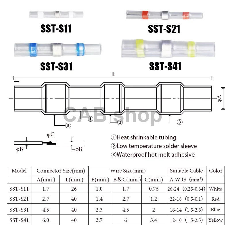 Sada 100ks smršťovacích bužírek s cínem. Určeno pro rychlou opravu a připojení poškozených kabelů. Sada obsahuje 4 nejoblíbenější typy trubic.