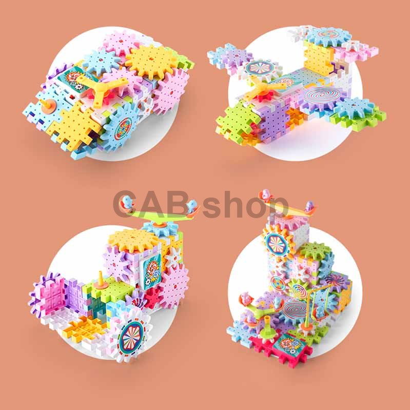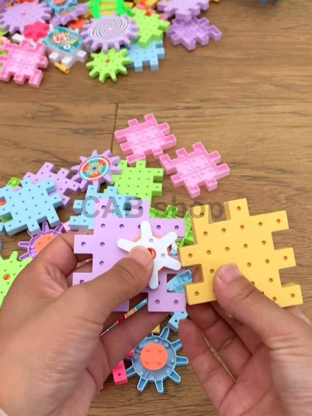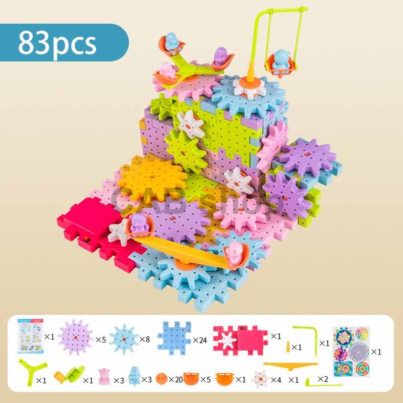 Stavebnice elektrického ozubeného kola (83 ks) je vzdělávací hračka složená z barevných stavebnic a ozubených kol.